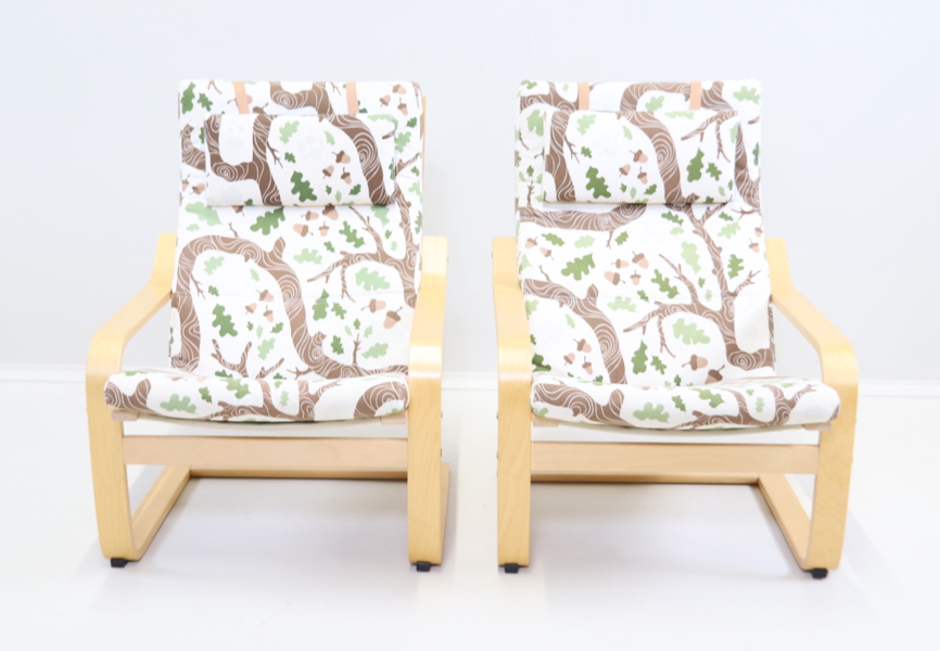Fåtöljer, ett par, björk/textil, "Poäng", IKEA.
