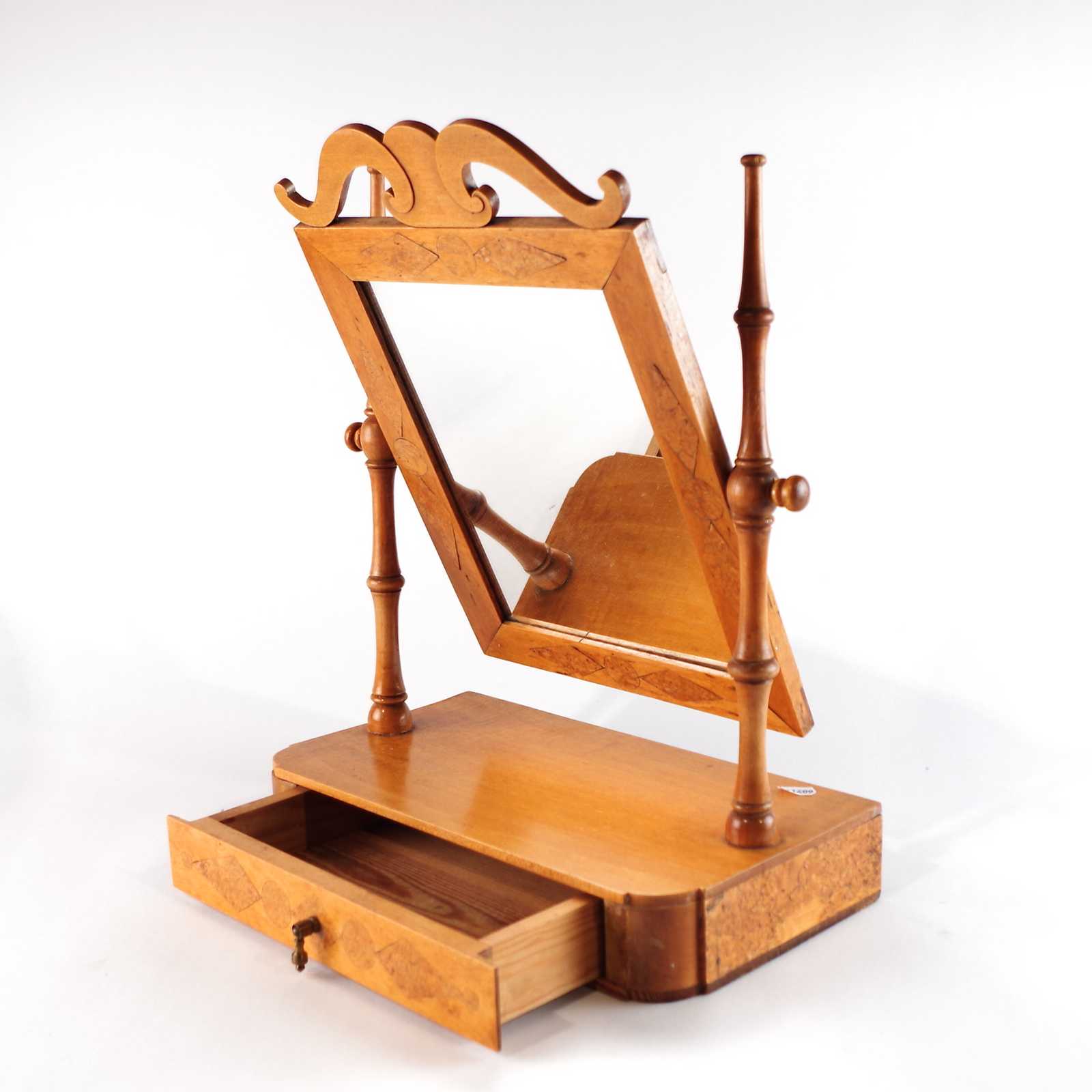 PIGTITTARE med låda, trä. H: 46cm, B: 33cm.