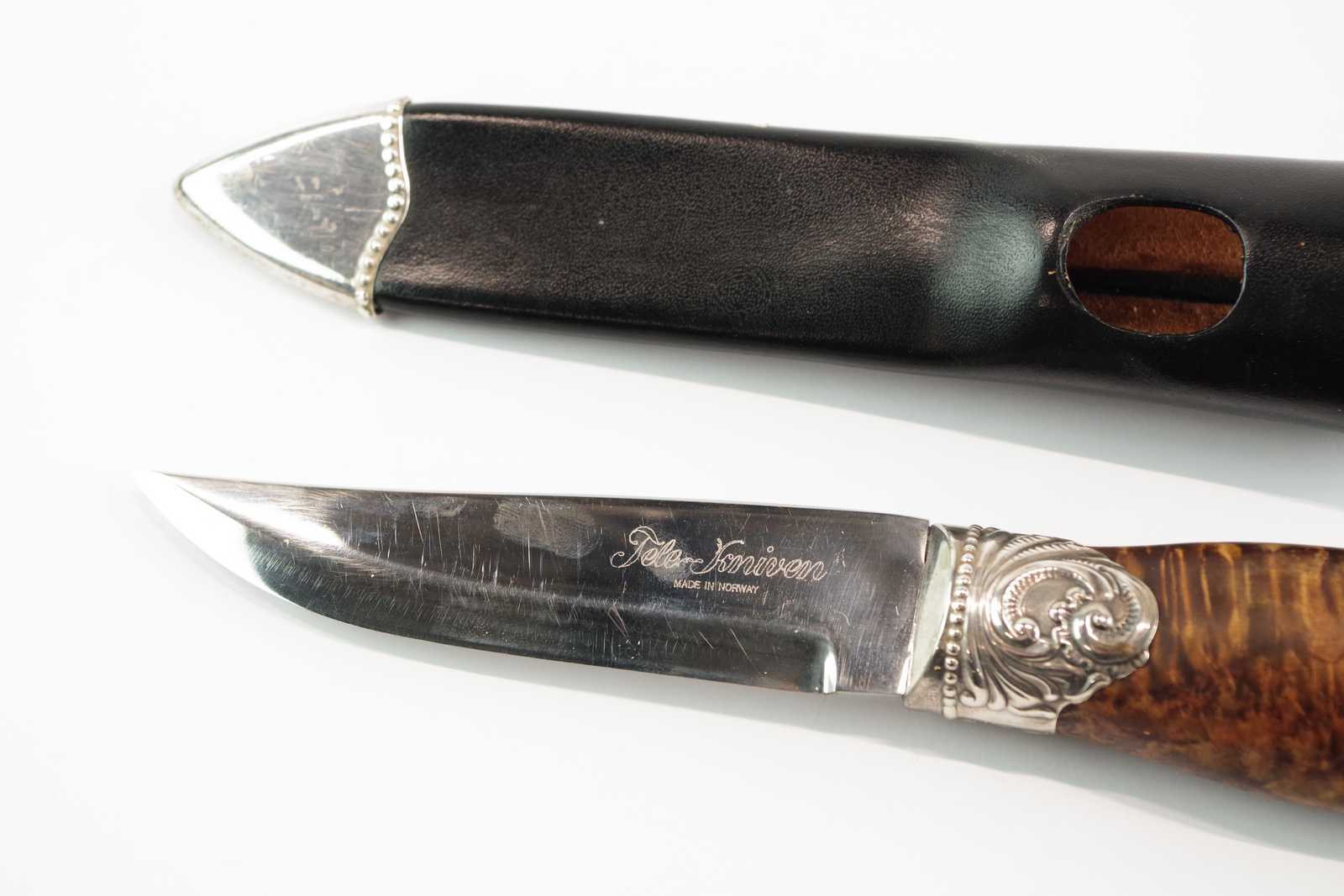 Bilder KNIV "Telekniven" Bröderna Mylius, Norge, beslag av sterling silver, skaft av björkrot. L:23cm