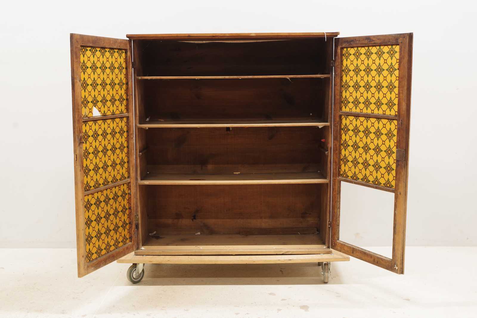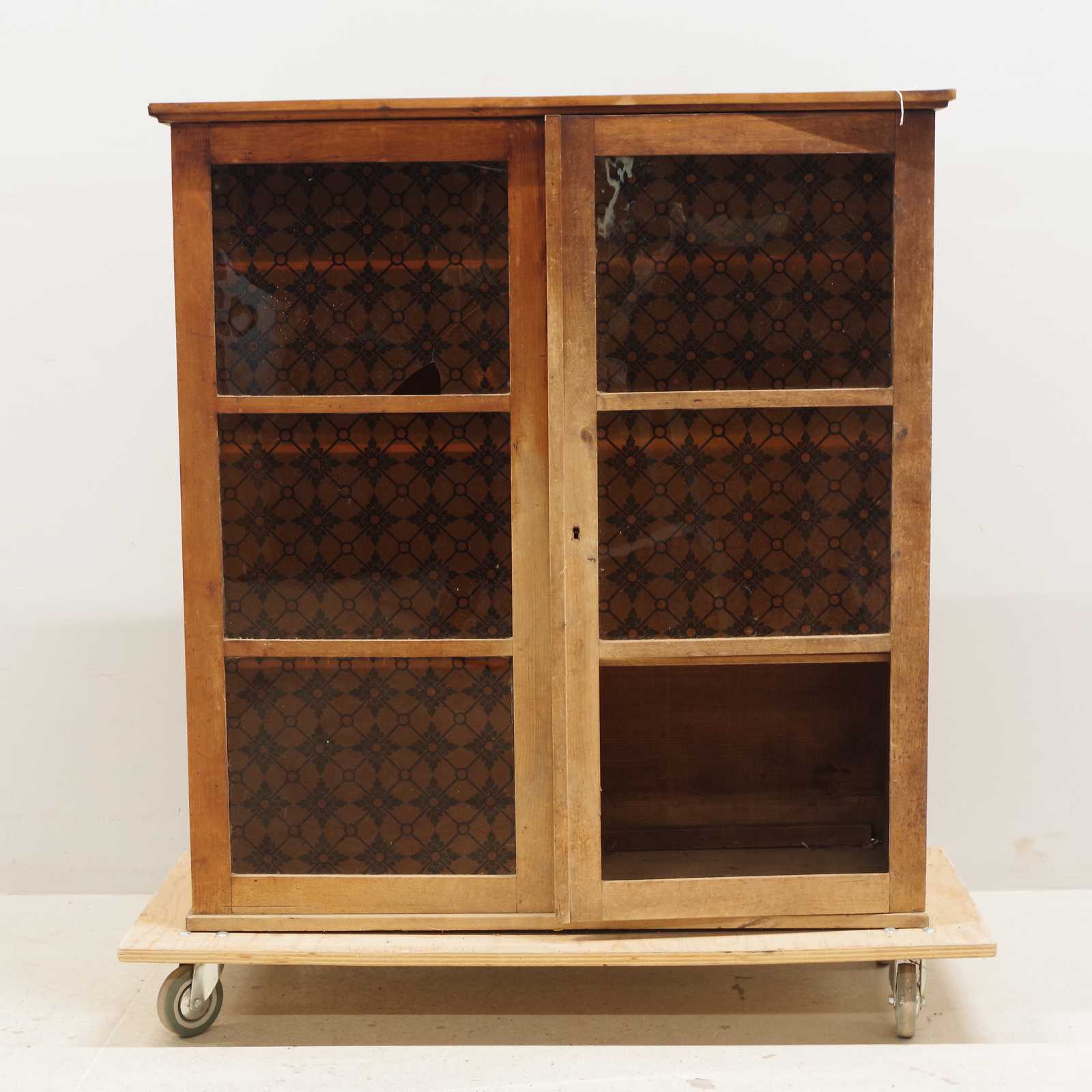 ÖVERSKÅP glasade dörrar, 1800 tal. H:114x 107x 39cm (slitage, en ruta saknas, en ruta med sprickor och skada)