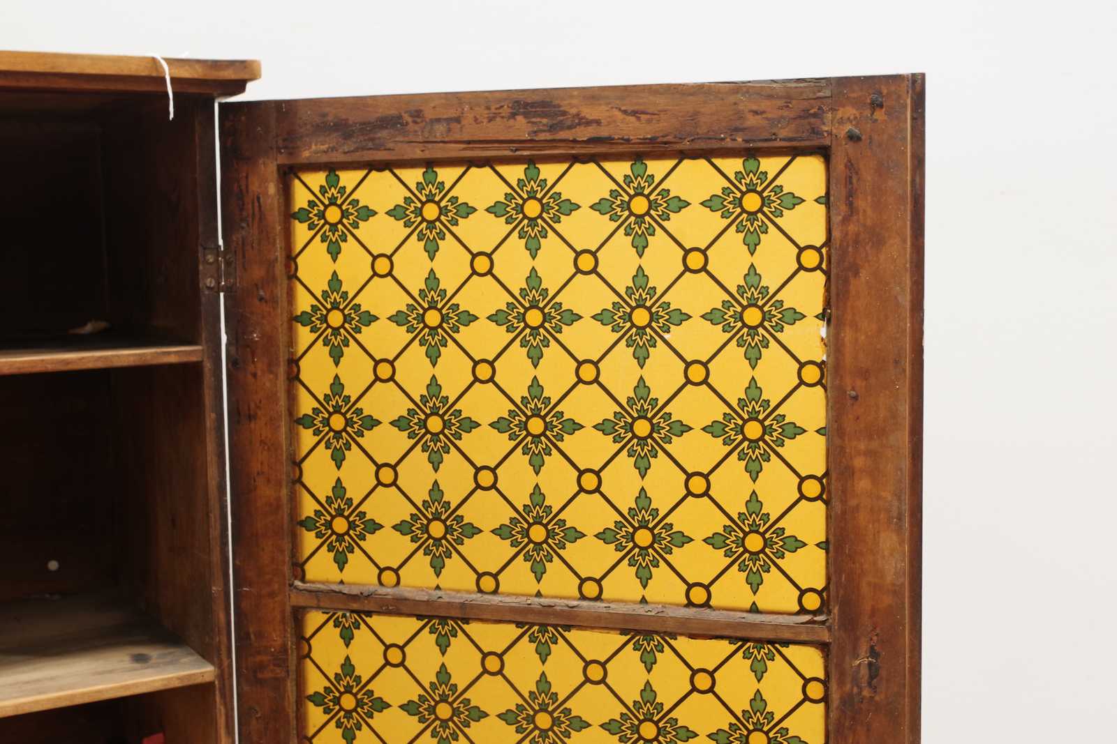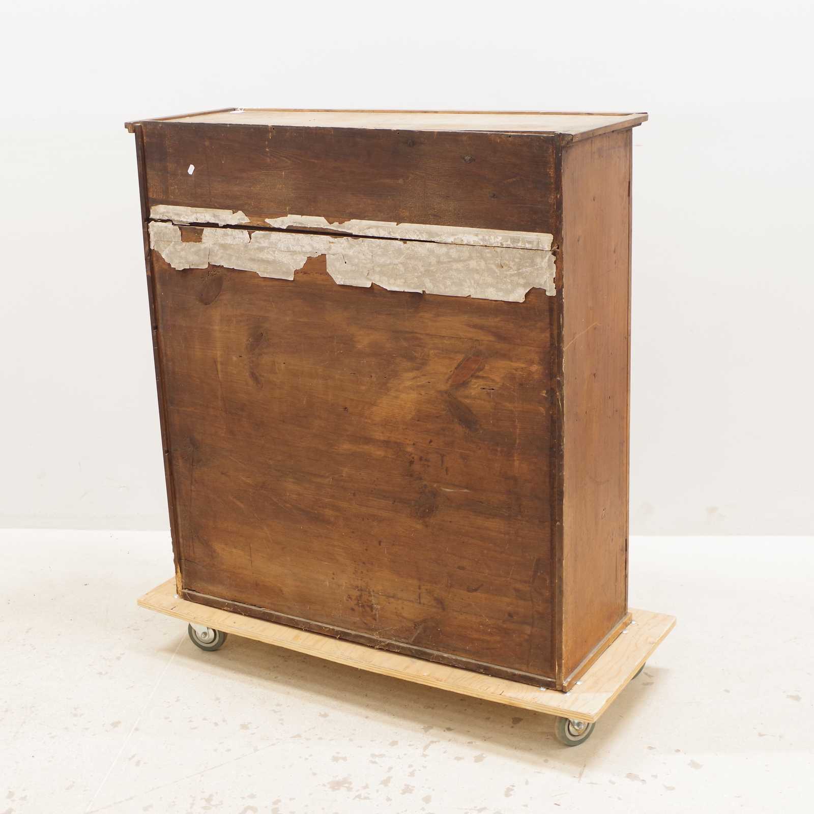 Bilder ÖVERSKÅP glasade dörrar, 1800 tal. H:114x 107x 39cm (slitage, en ruta saknas, en ruta med sprickor och skada)
