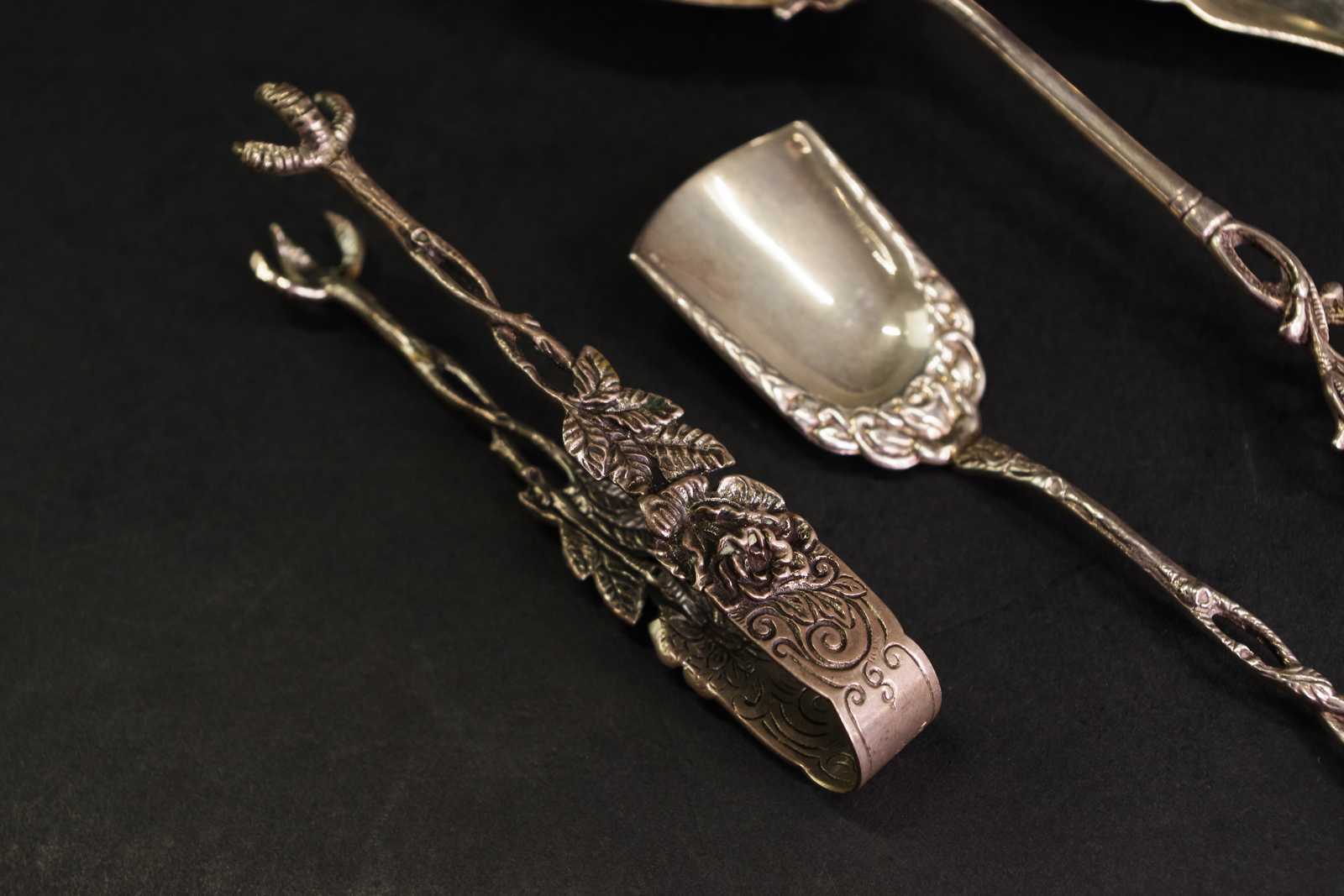 SERVERINGSSKEDAR & SOCKERTÅNG silver Total V:102 g