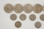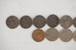 Om du tittar på det första fotot är mynten uppdelade i 2 grupper, den nedre gruppen är i silver.