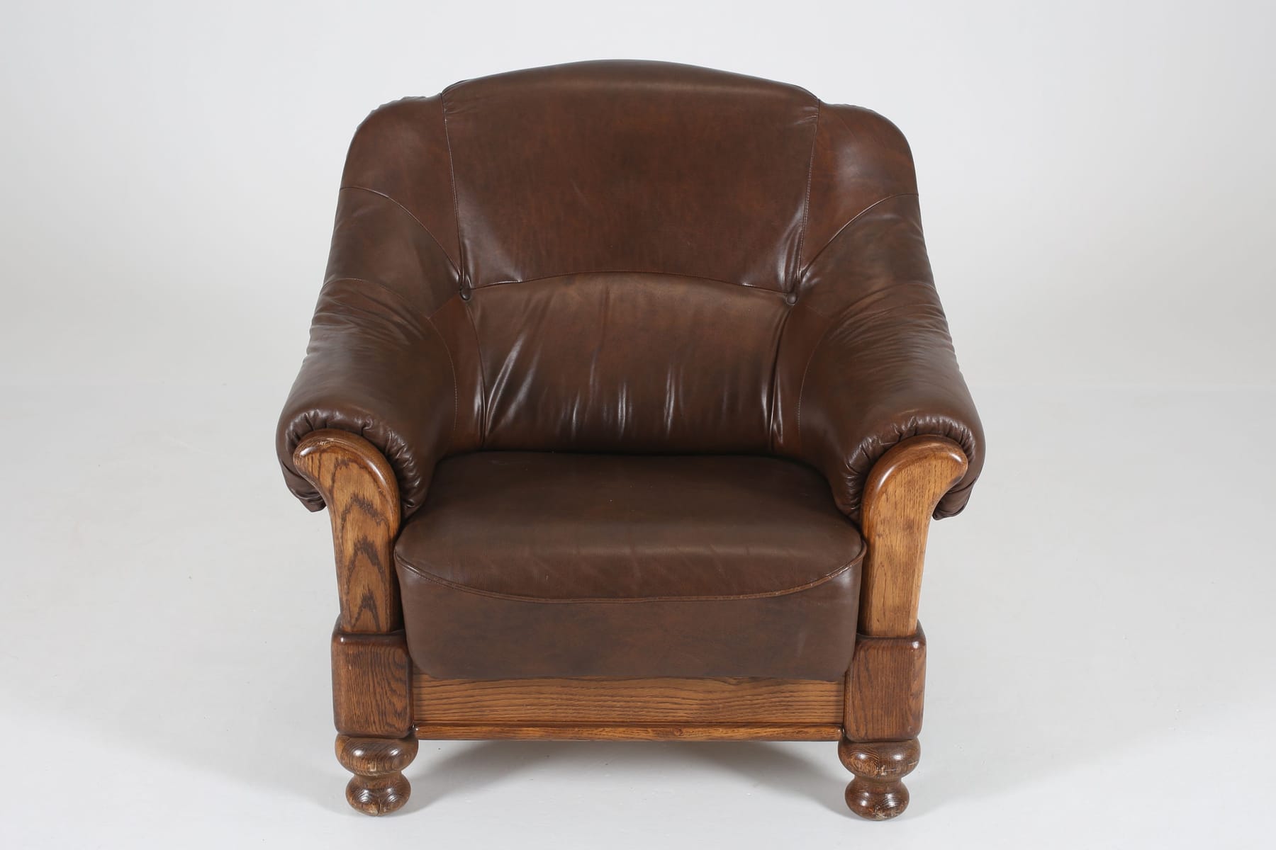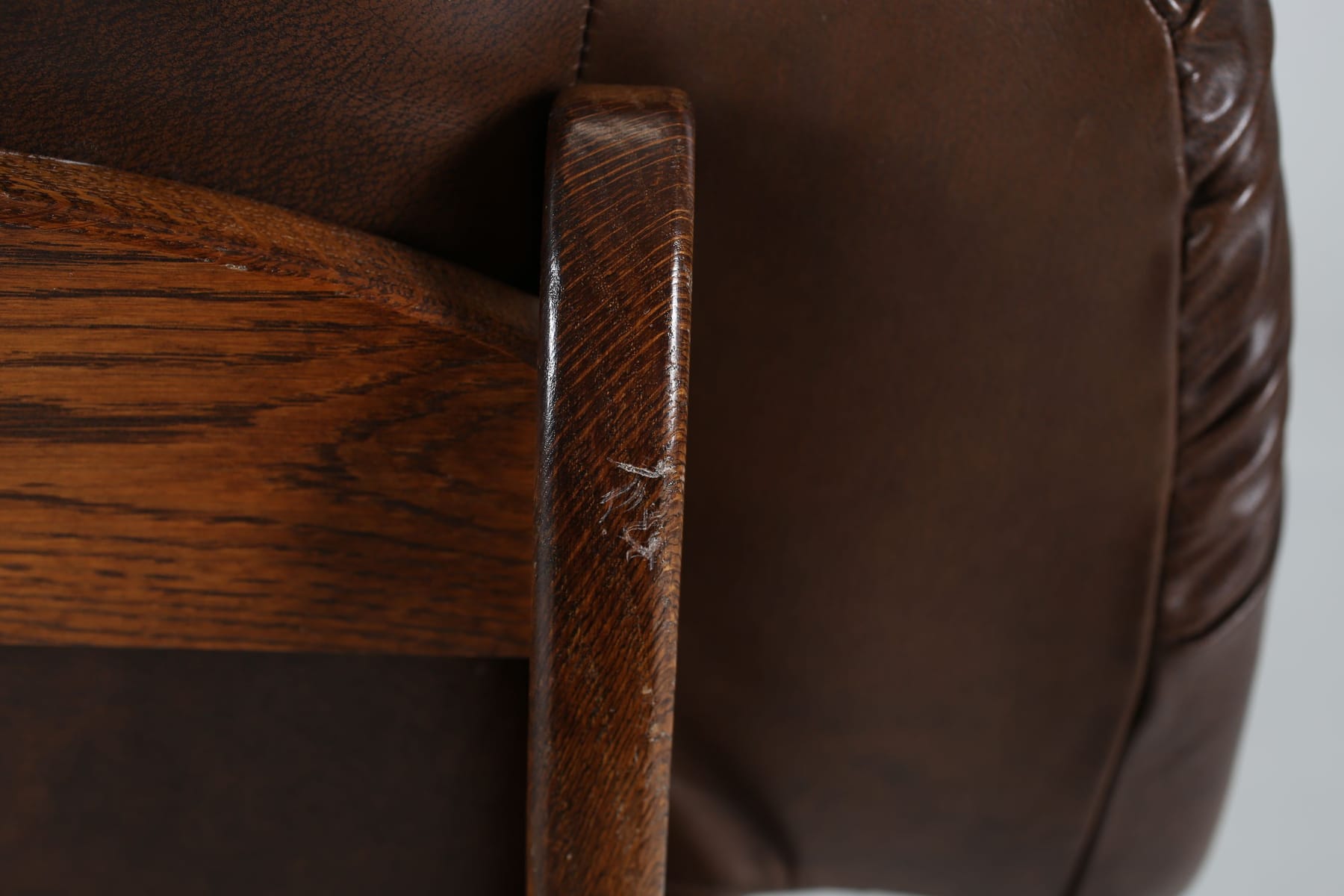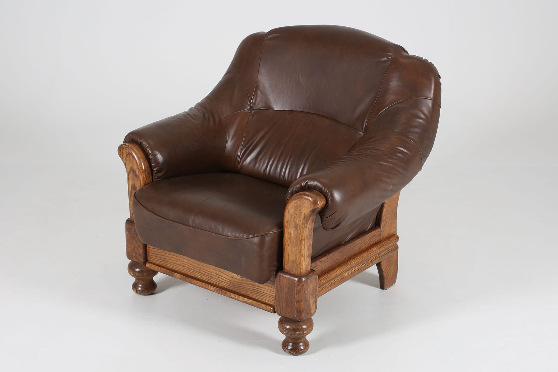 FÅTÖLJ, betsat trä/ konstläder, 1980-tal