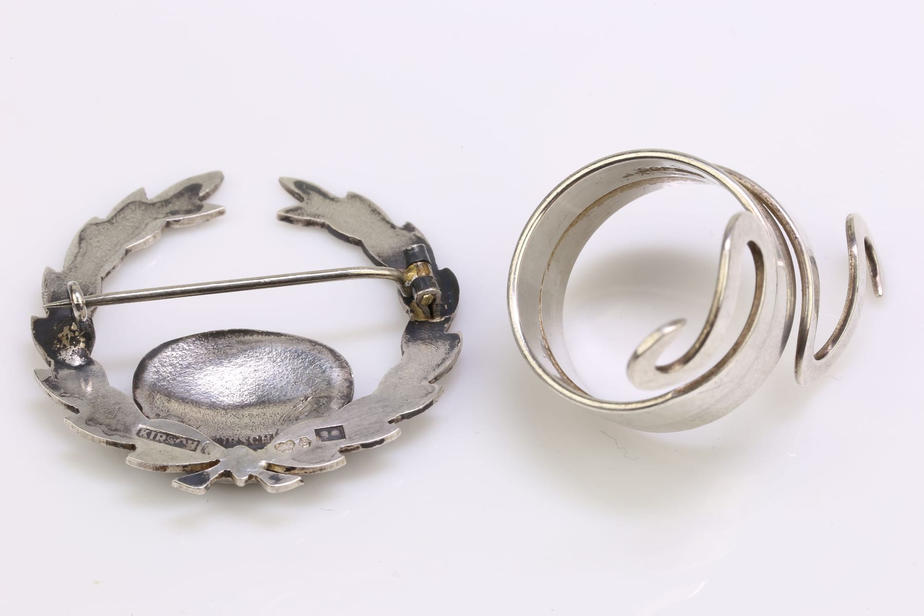 Bilder BROSCH, med studentmössa och lagerkrans, samt RING, silver
