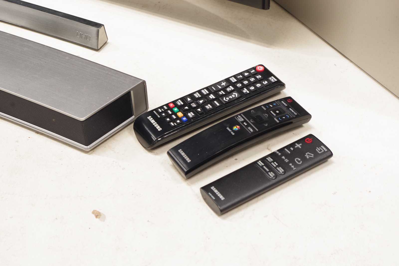Bilder PLATT-TV med väggfäste, Soundbar & Subwoofer, curved, Samsung, 55" (fungerar)