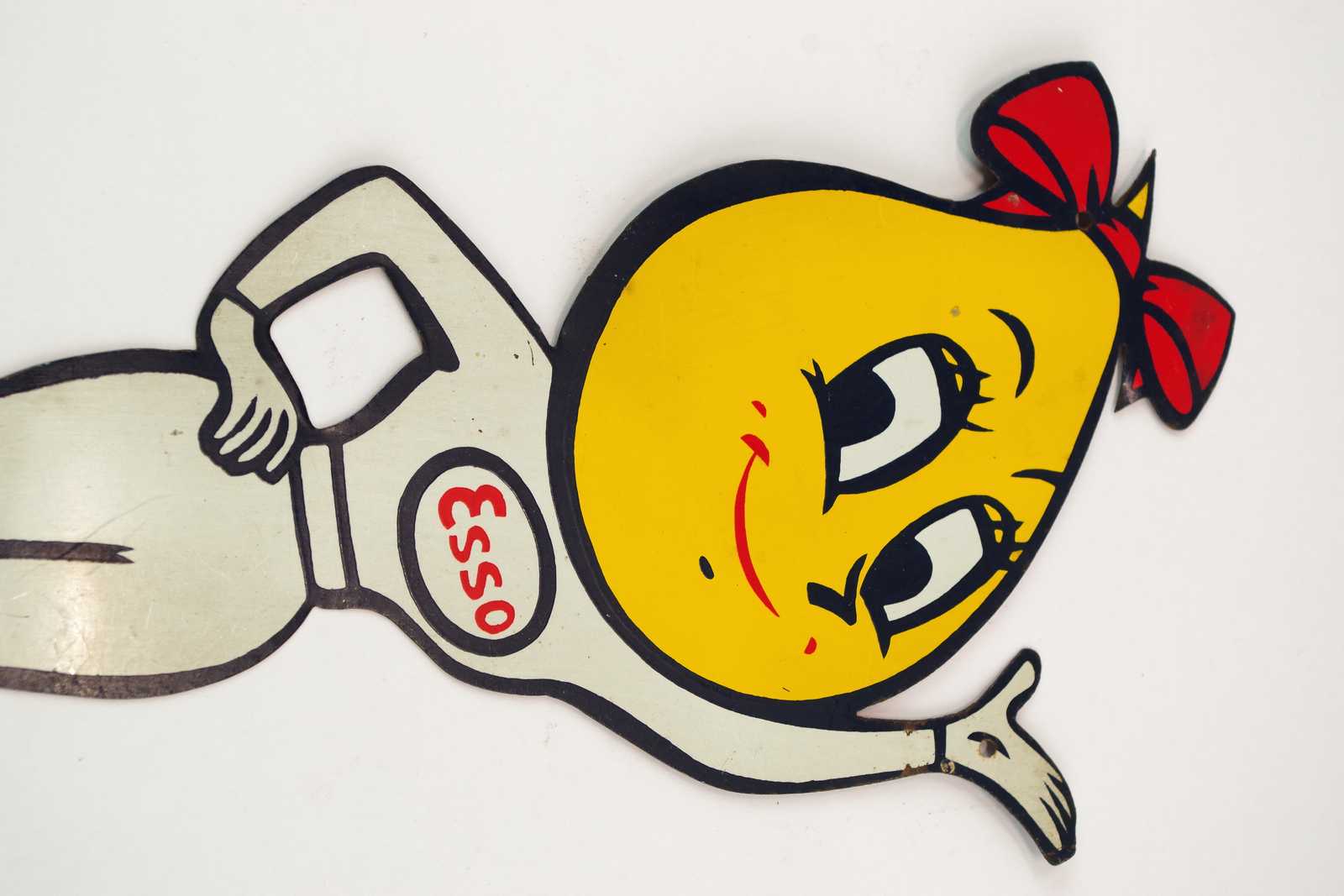 Bilder REKLAMSKYLT Esso, Mrs Drip, i plåt. 38.5x14.5cm (mindre märken & fläckar förekommer)