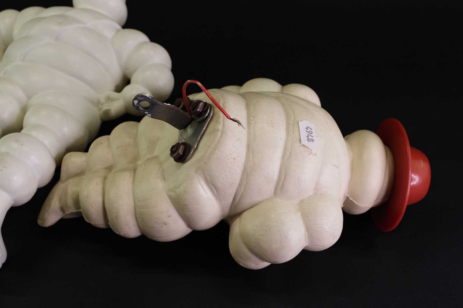 Bilder MICHELINGUBBAR 2st, varav en med belysning & text "T.I.R" (Transport inom riket). H:31cm