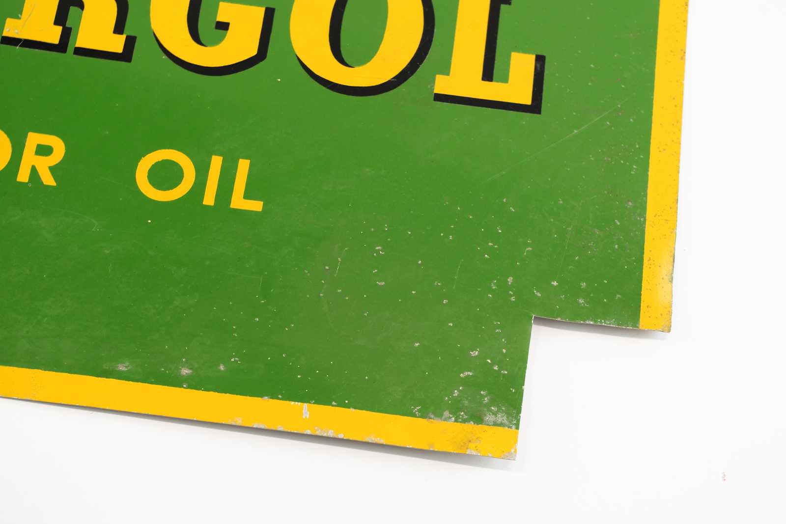 Bilder REKLAMSKYLT BP, Energol, Motor Oil, i plåt. 49x37cm (märken, repor, ett hörn bortklippt)