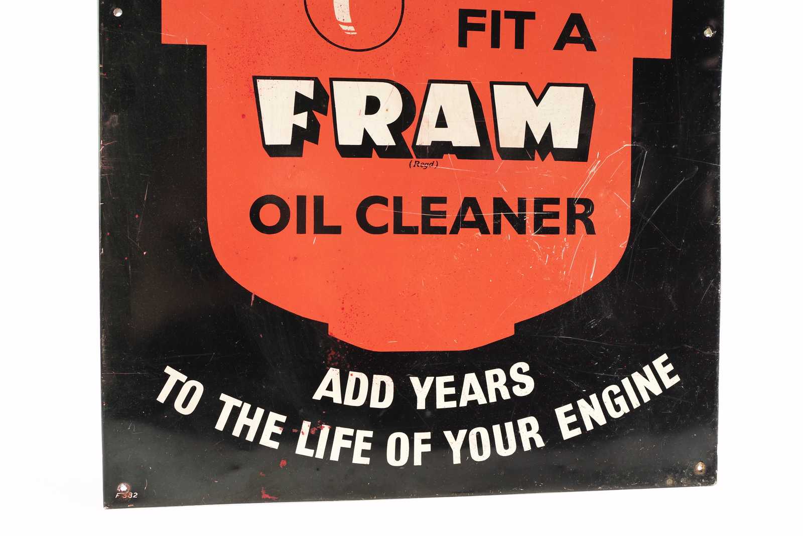 REKLAMSKYLT Fram Oil Cleaner, i plåt. 30x46cm (slitage, märken, repor, fläckar)