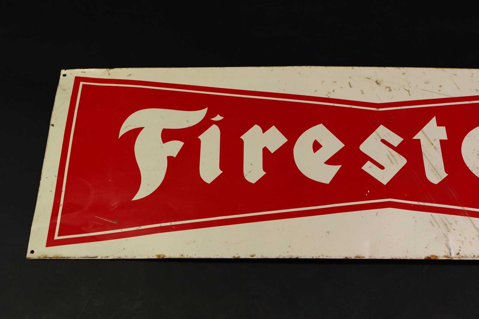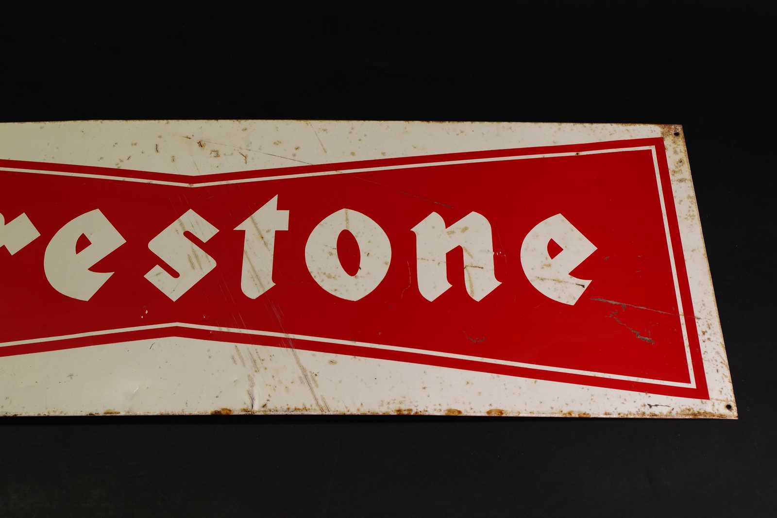 Bilder REKLAMSKYLT Firestone, i plåt. 72x23cm (revor, märken, rost, ojämnheter förekommer)