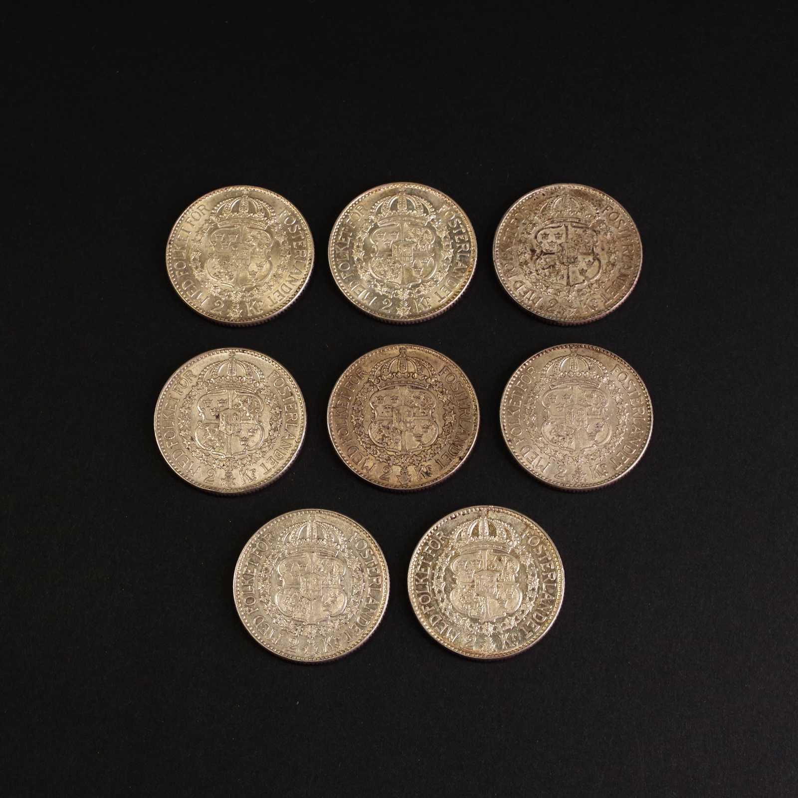 Bilder SILVERMYNT 8st, 2 kronor, 1937, 80% silver. vikt: 120g