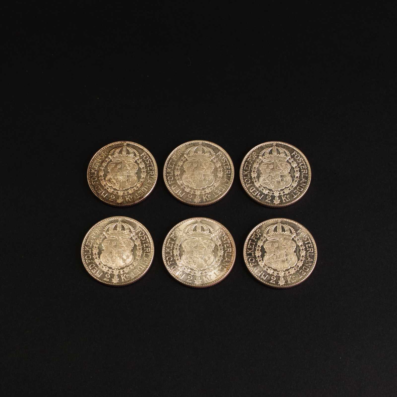 Bilder SILVERMYNT 6st, 2 kronor, 1938, 80% silver. vikt: 89.2g