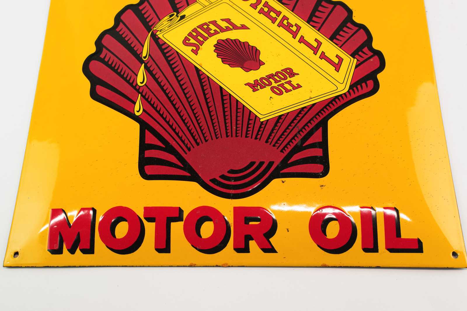 Bilder REKLAMSKYLT / EMALJSKYLT Shell, Motor Oil, okänt tillverkningsår. 45x45cm