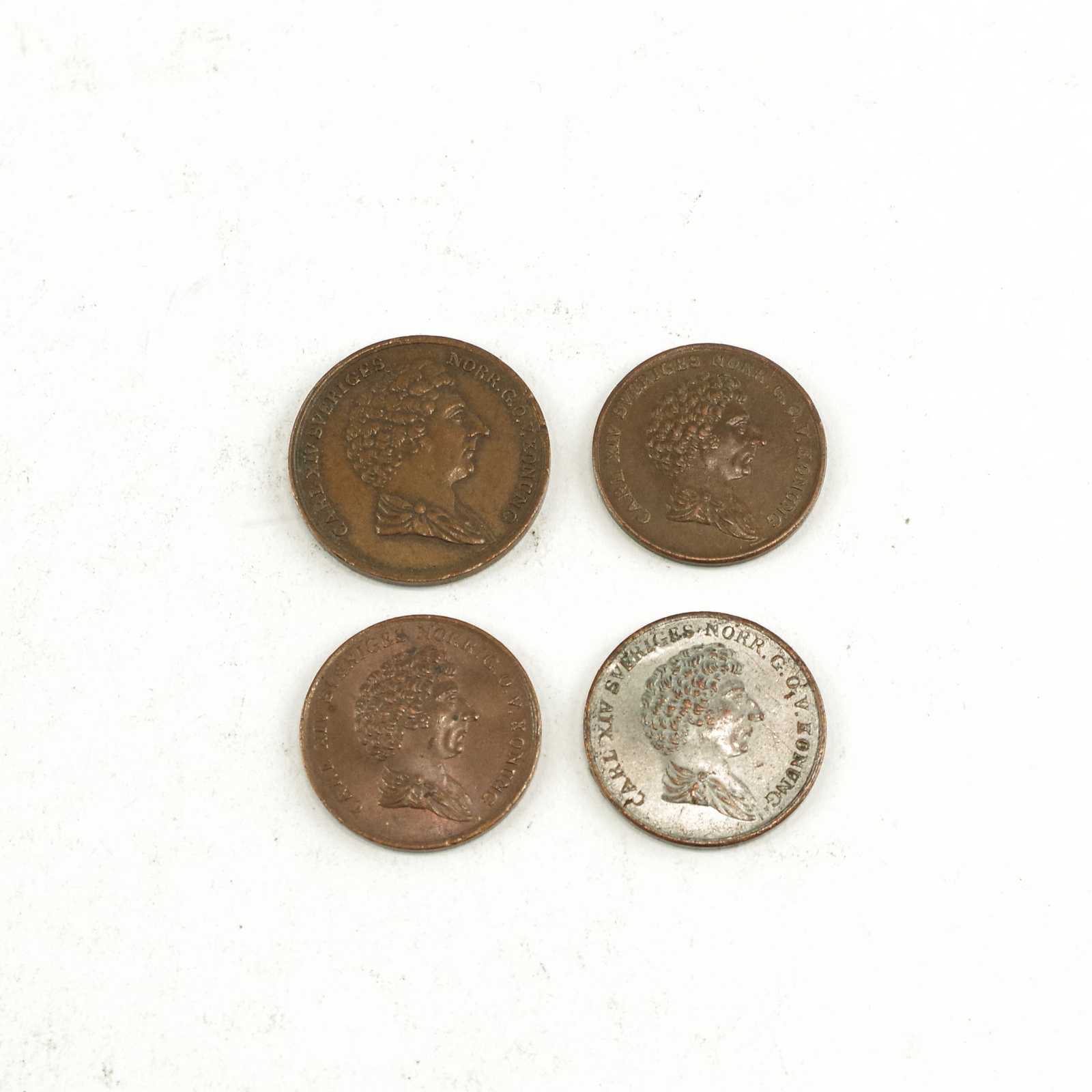 Auktioner MYNT 1/4 Skilling, överprägling 1833 på 1832 & 3st 1/6 skilling varav 1st försilvrad, samtliga Carl Den 14:e Palmkvist.