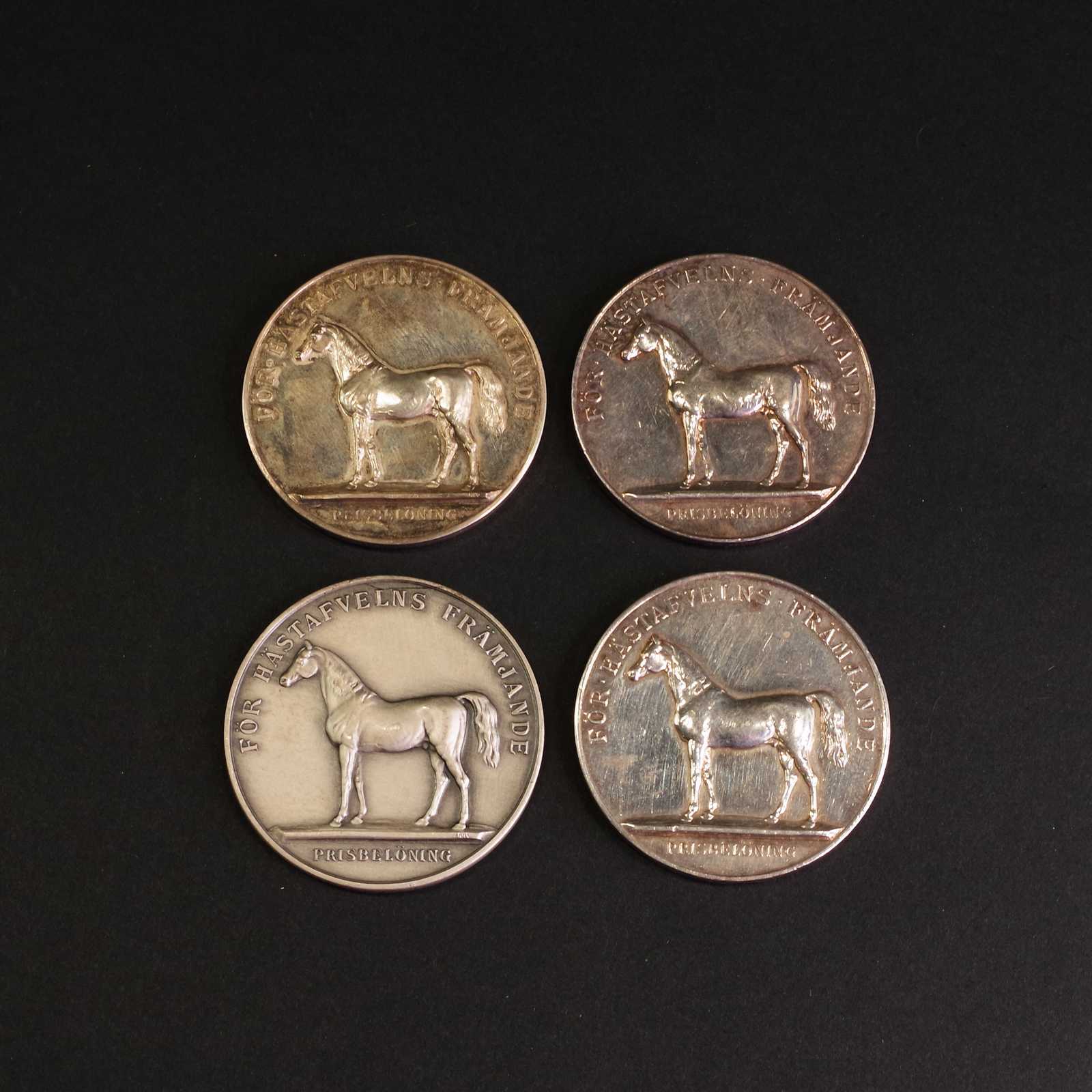 Auktioner MEDALJER 4st, silver, "För Hästafvelns Främjande" 3st Gustaf den V, 1st Gustaf den VI, vikt: 151,49g