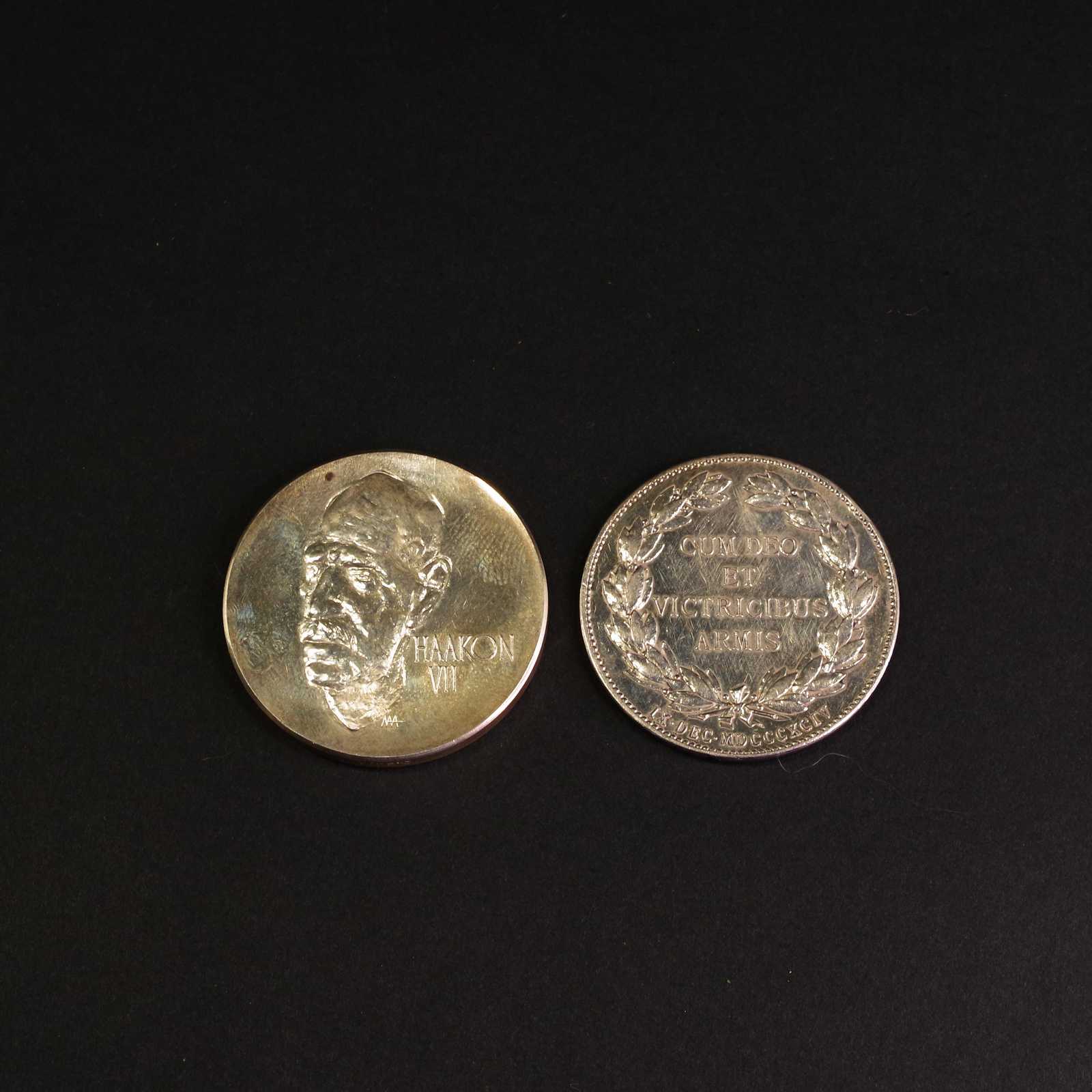 MINNESMEDALJER 2st, silver, Gustaf II Adolf & Haakon VII. vikt: 68.41g D:40mm
