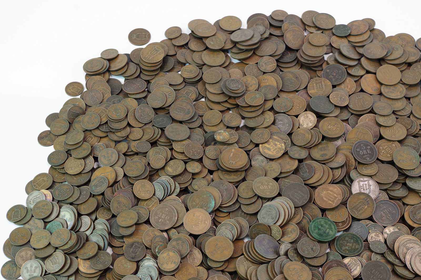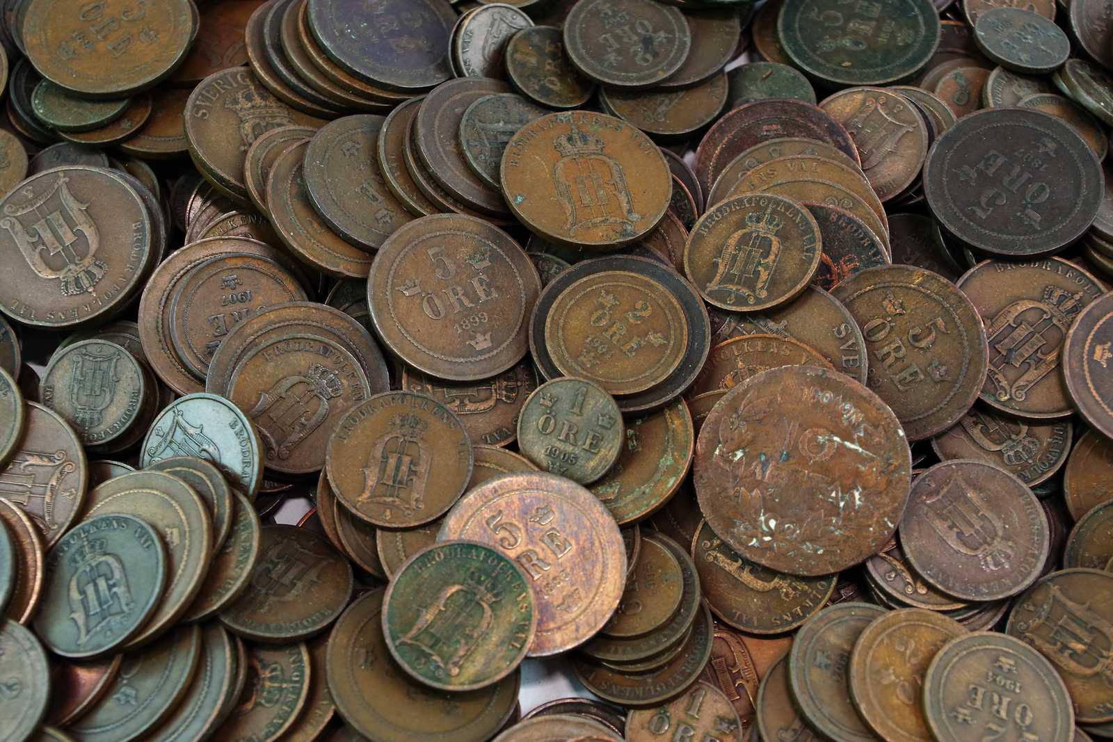 Bilder KOPPARMYNT Oscar den II, 1 öre, 2 öre, 5 öre. vikt: ca 9.6kg
