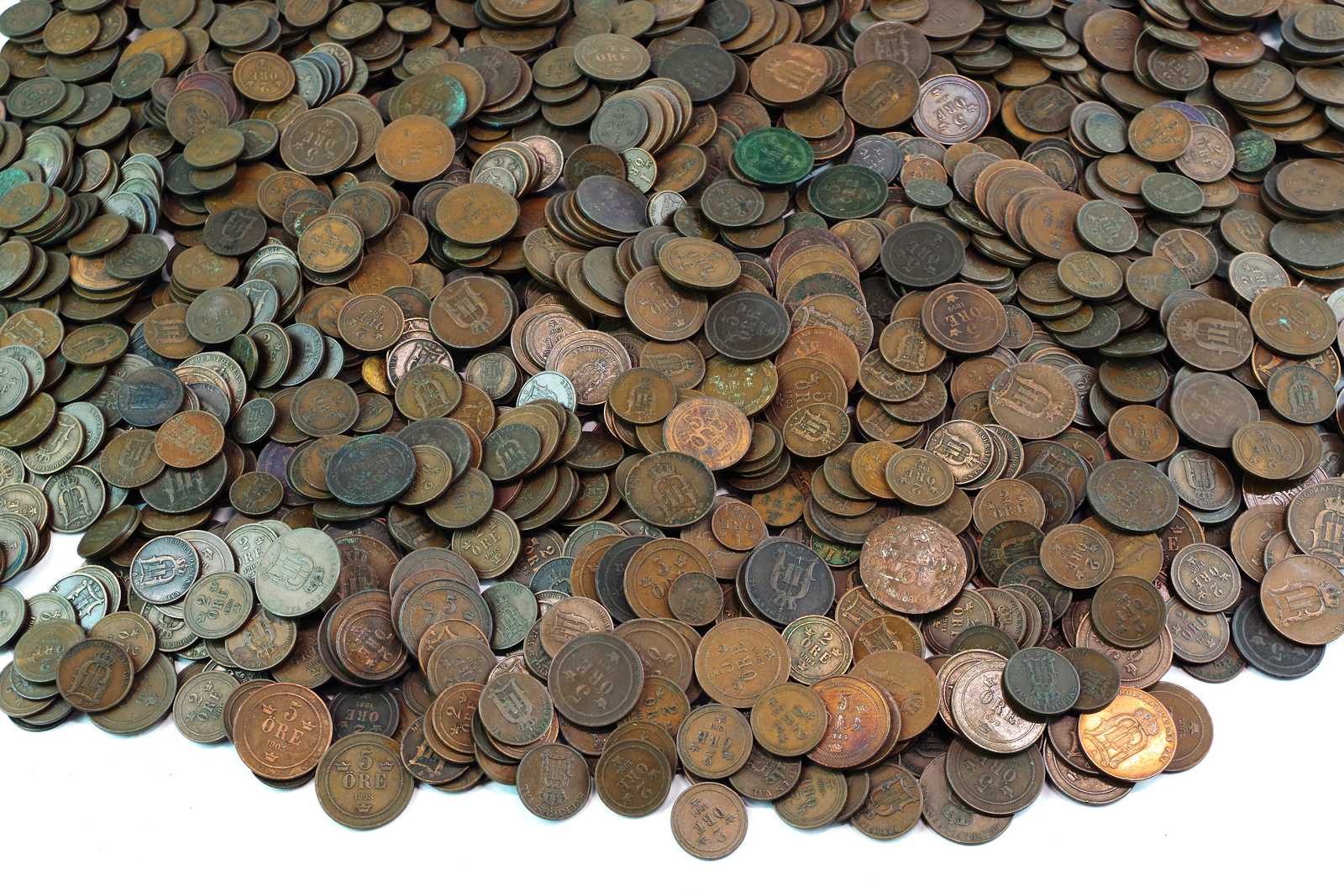 KOPPARMYNT Oscar den II, 1 öre, 2 öre, 5 öre. vikt: ca 9.6kg