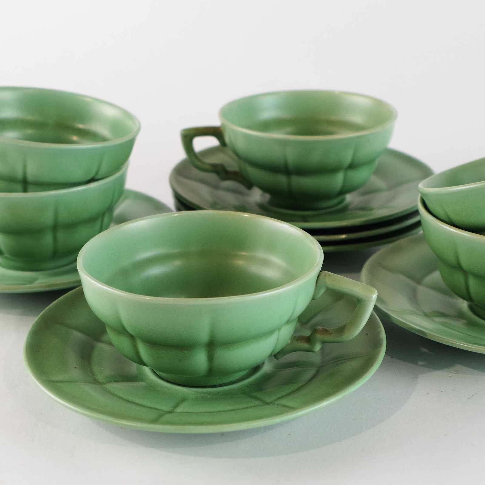 Bilder TESERVIS Gefle, Arthur Percy. D:10,5cm tekoppar. 6st tekoppar med fat.