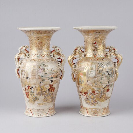Polykrom dekor, uppsvängda hänklar, höjd 15,5 cm