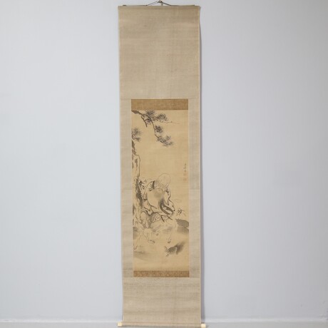 Väggfäste av porslin och kupa av opakglas, höjd ca 43 cm