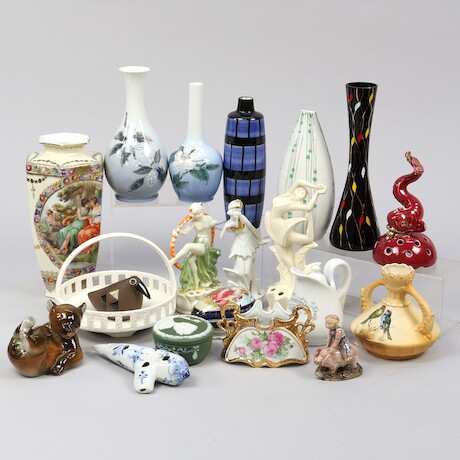 Fast stoppad sits med broderad dekor av blommor, en med tassfötter, längd 33 - 35, höjd 15 - 19,5 cm