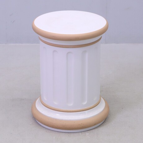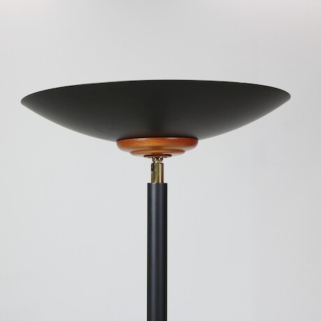 Fot av grönlackerad metall, skiva av olivgrön linoleum, etikettmärkt, diameter 60, höjd 91 cm