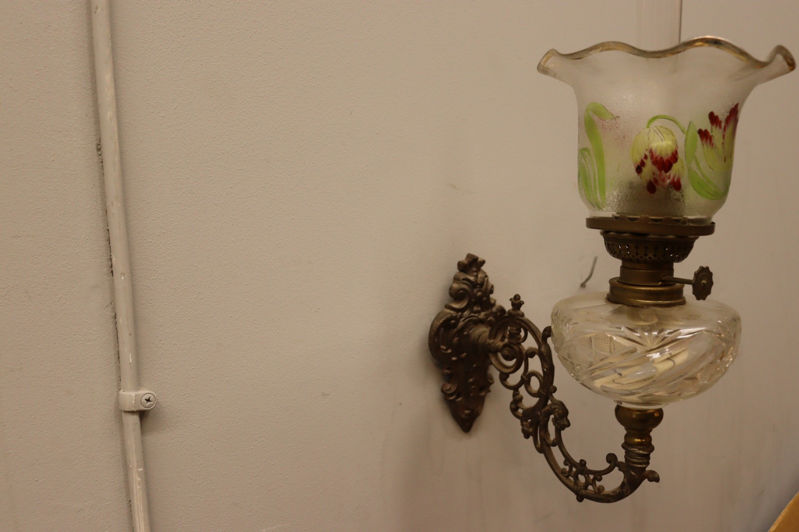 Stomme av vitlackerad metall, glaskupa lackerad med täckande vit nertill och gradvis transparent upptill, diameter ca 27, höjd 40 cm