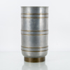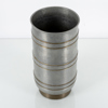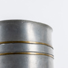 Cylinderformad, med dekorativt räfflad fotklack och banddekor av mässing, höjd ca 24, diameter 12,5 cm