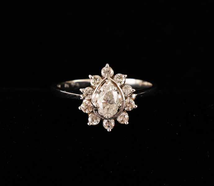 Med 10st briljantslipade diamanter och en päronslipad diamant.