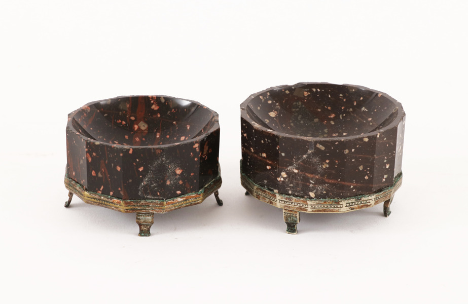 Blybergs- respektive rännåsporfyr. Montering i försilvrad mässing.