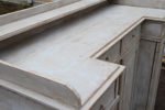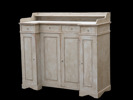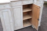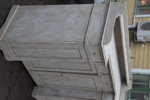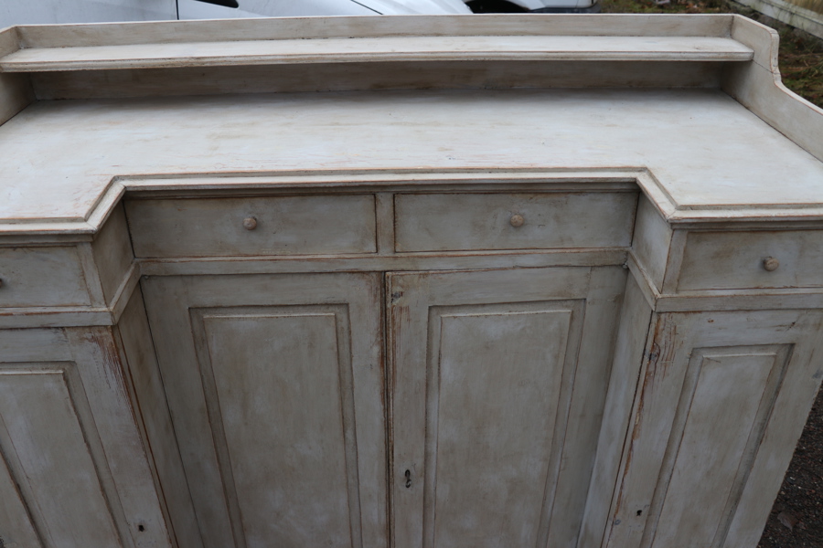 Gråmålad .Med fyra dörrar och fyra lådor. Nyckel finns.