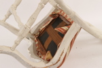 Vitmålad. Med skuren dekor av akantus och musselformationer. Svängda ben och ryggbricka.