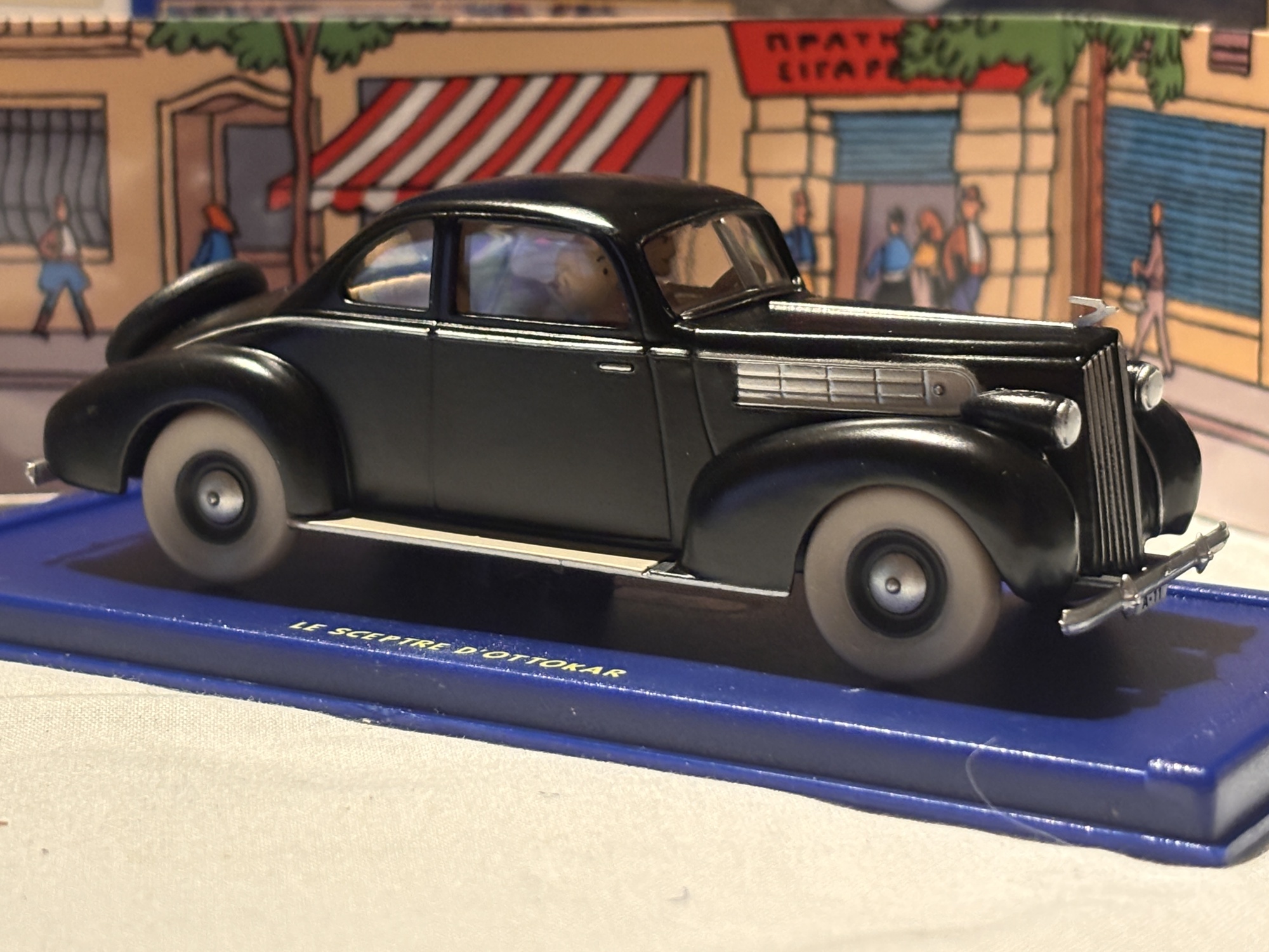 en eftertraktad samlarmodell ur En voiture Tintin-serien: Packard 12 Coupé 1939, känd från albumet Kung Ottokars spira (Le Sceptre d’Ottokar, 1947).