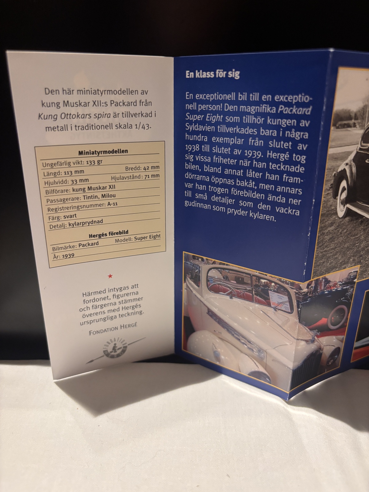 Bilder Tintin – Packard Super Eight 1939 – Kung Muskar XII:s bil – 1:43 Atlas/Fondation Hergé