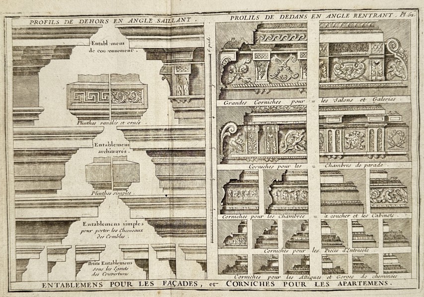 Bilder Augustin-Charles d'Aviler (1653–1701) – Architectural Illustrations of Entablatures and Cornices – Copperplate engraving (18th Century)