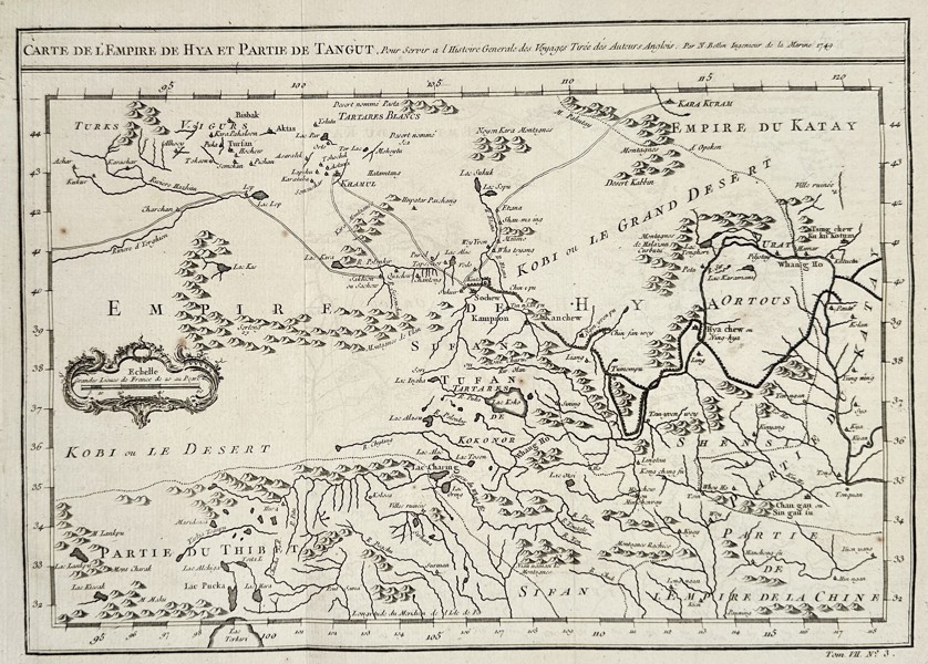 Bilder Jacques-Nicolas Bellin (1703–1772) – Map of the Empire of Hya and Part of Tangut – Copperplate engraving (1749)