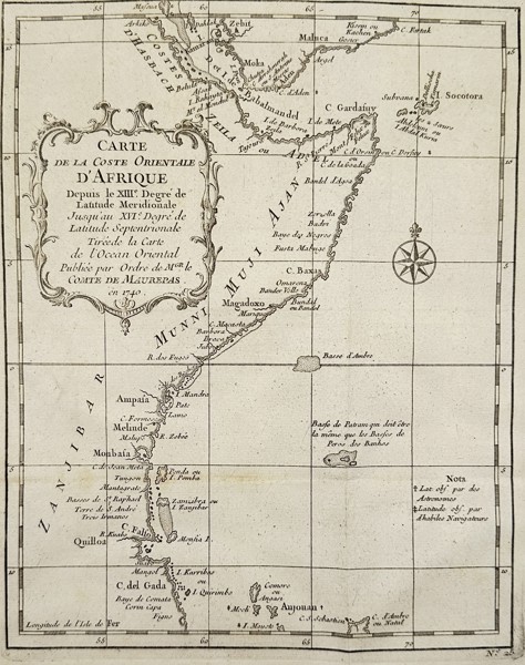 Bilder Jacques-Nicolas Bellin (1703–1772) – Map of the East Coast of Africa (Carte de la Coste Orientale d'Afrique) – Copperplate engraving (1740)