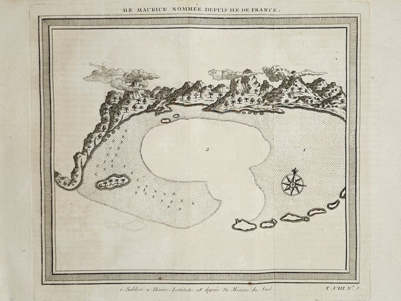 Bilder Jacques-Nicolas Bellin (1703–1772) – Map of the Island of Mauritius (Isle Maurice Nommée Depuis Isle de France) – Copperplate engraving (18th Century)