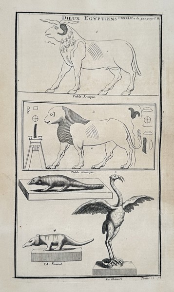 Bilder Bernard de Montfaucon (1655–1741) – Study of Egyptian Deities and Sacred Animals – Copperplate engraving (1719)