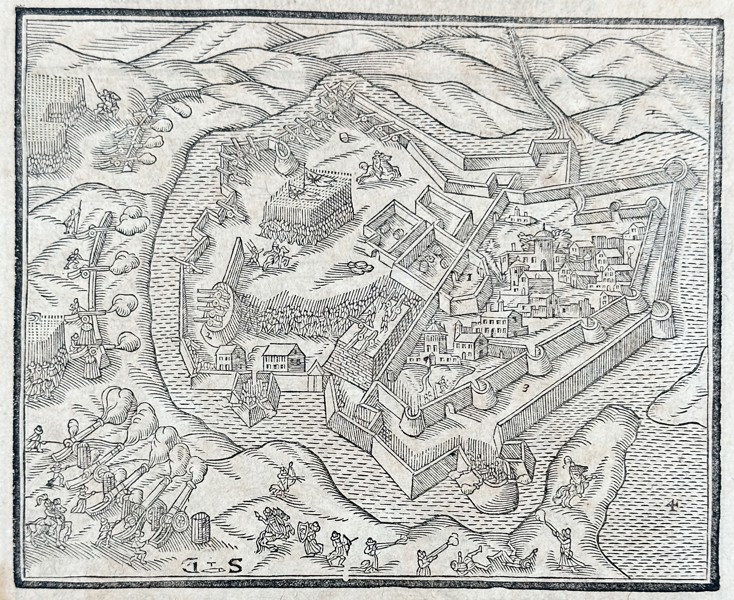 Bilder Sebastian Munster (1488–1552) – The Seizure of Jerusalem by the Saracens (Jerusalem von Saracenen eingenommen) – Woodcut (1544)