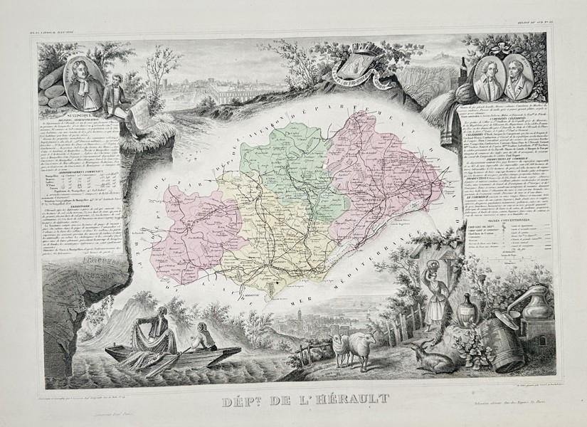 Bilder Victor Levasseur (1800–1870) – Map of the Department of Hérault – Steel engraving with hand coloring (19th Century)