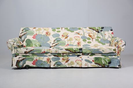 Soffa, klädd i tyg "Lotus" av GP & J Baker, L=212