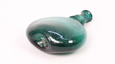 Bilder Flaska, 1900-tal, gröntonat glas, puntlad med driven mynning, slinga runt halsen, höjd 23,5 cm