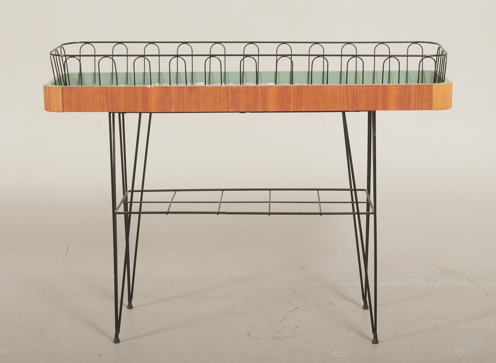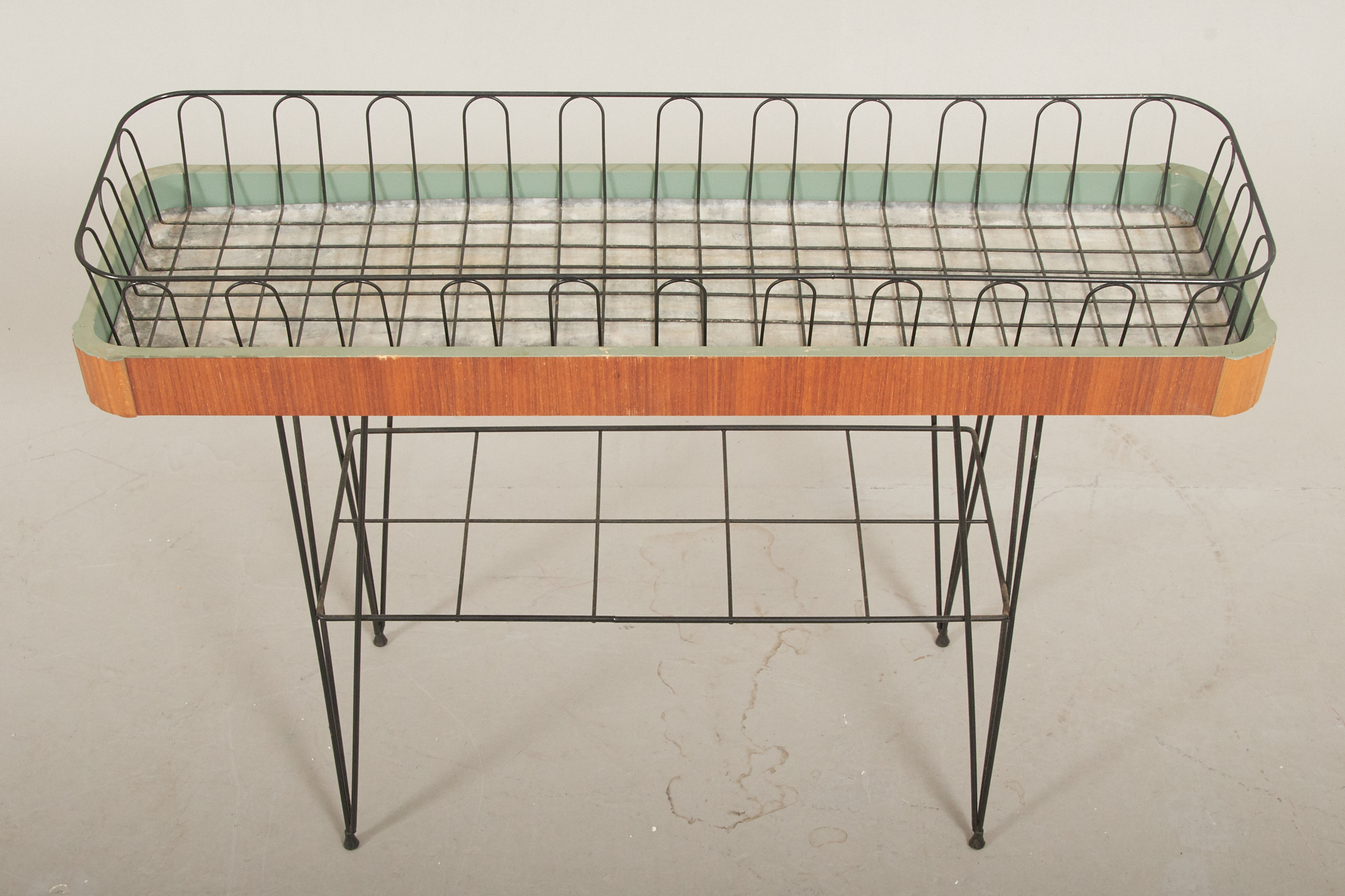 Insats i metall, 85 x 25 cm, höjd 65 cm, bruksslitage, skavmärken förekommer.