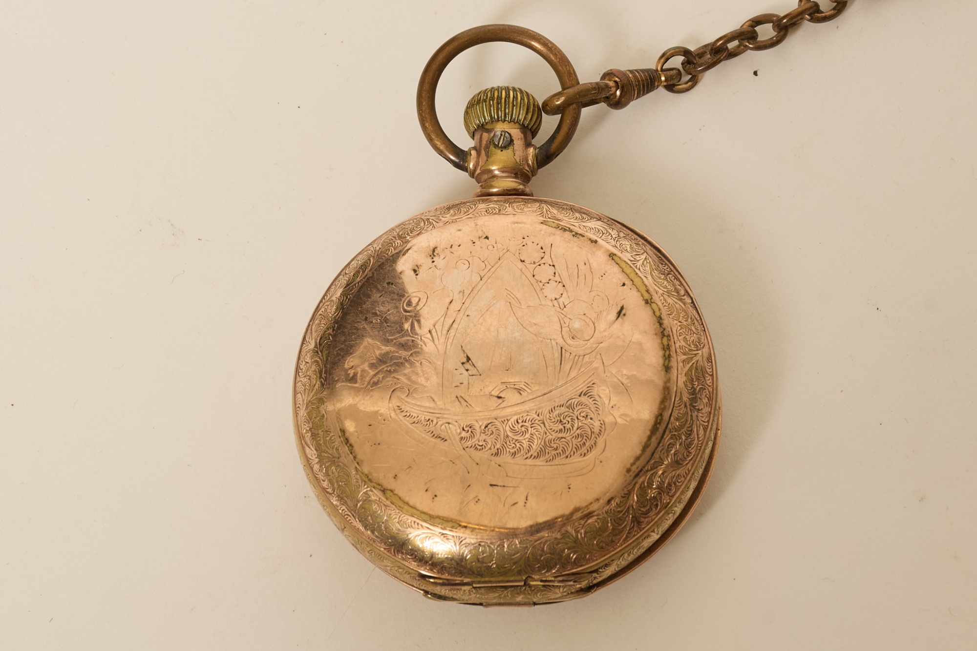 1800-tal, gulddouble, med kedja, diam. 54 mm, bruksslitage, går ej