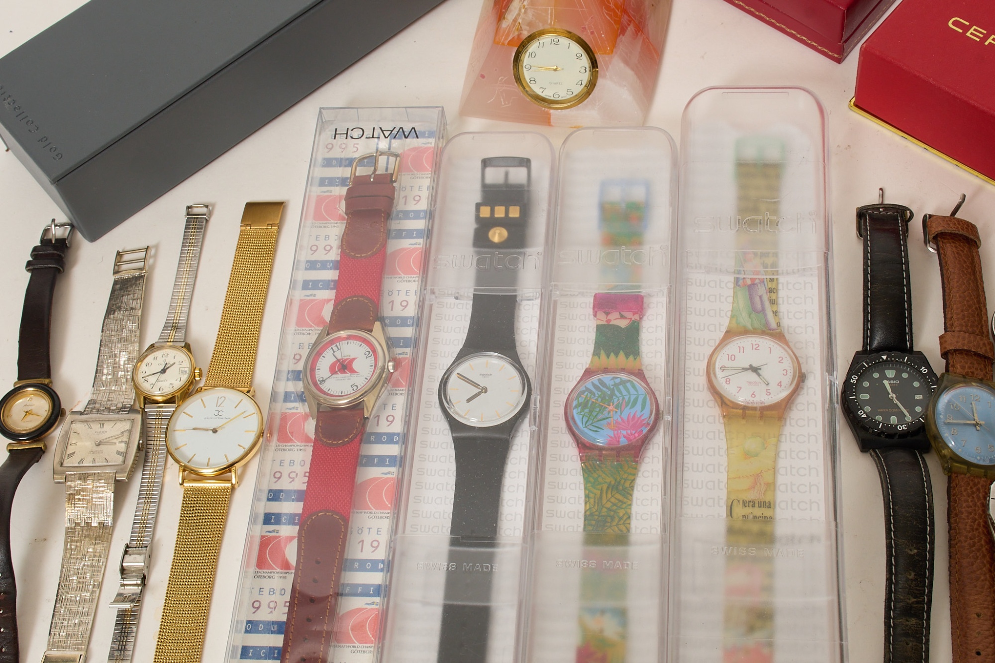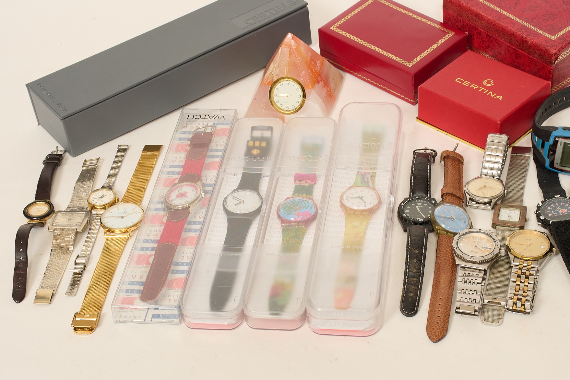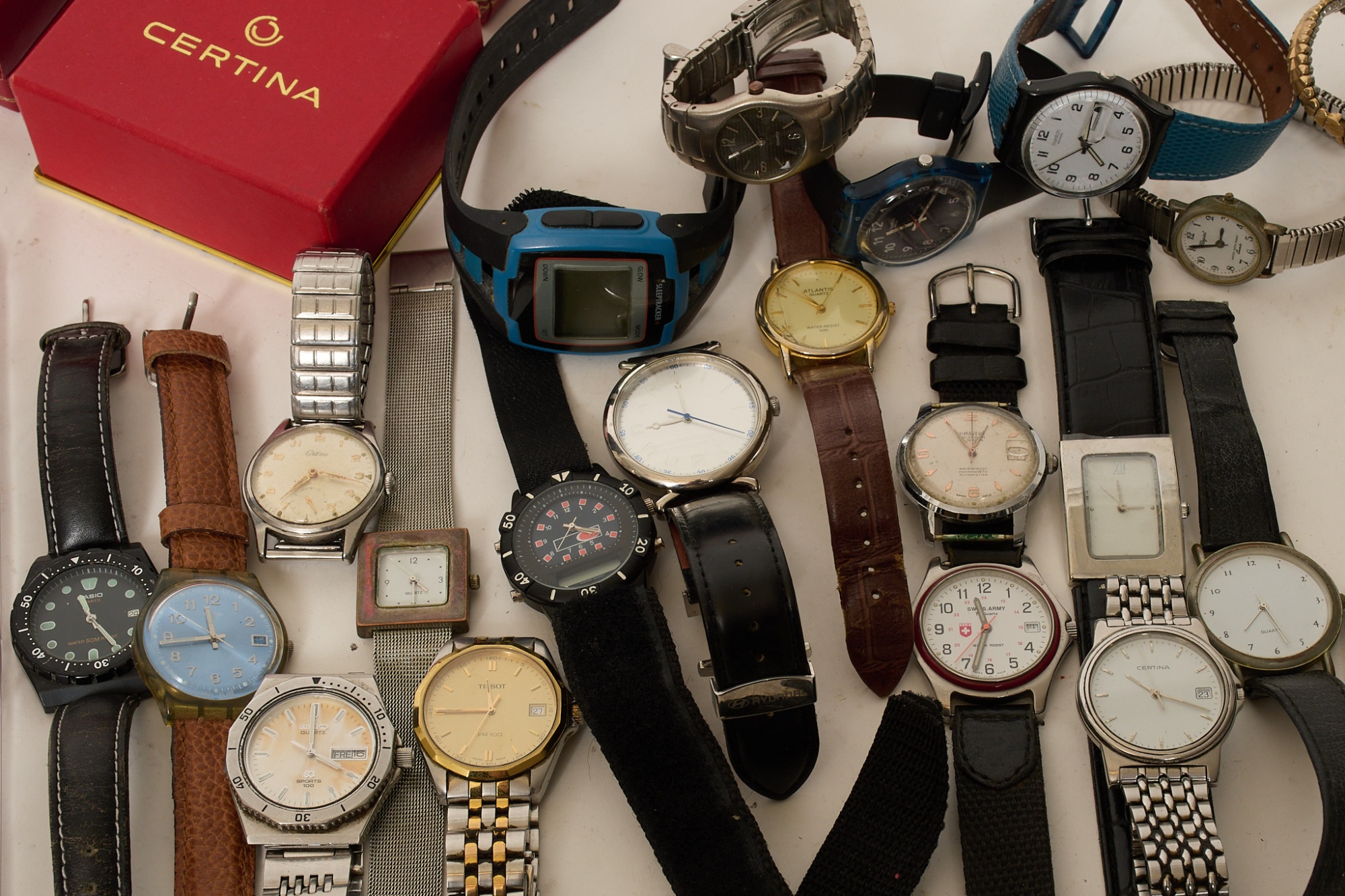 44 st armbandsur. Bl a Seiko, Tissot, Certina, Swatch, Casio, Citizen mm samt 4 klockboxar. Ej funktionstestade, skador förekommer