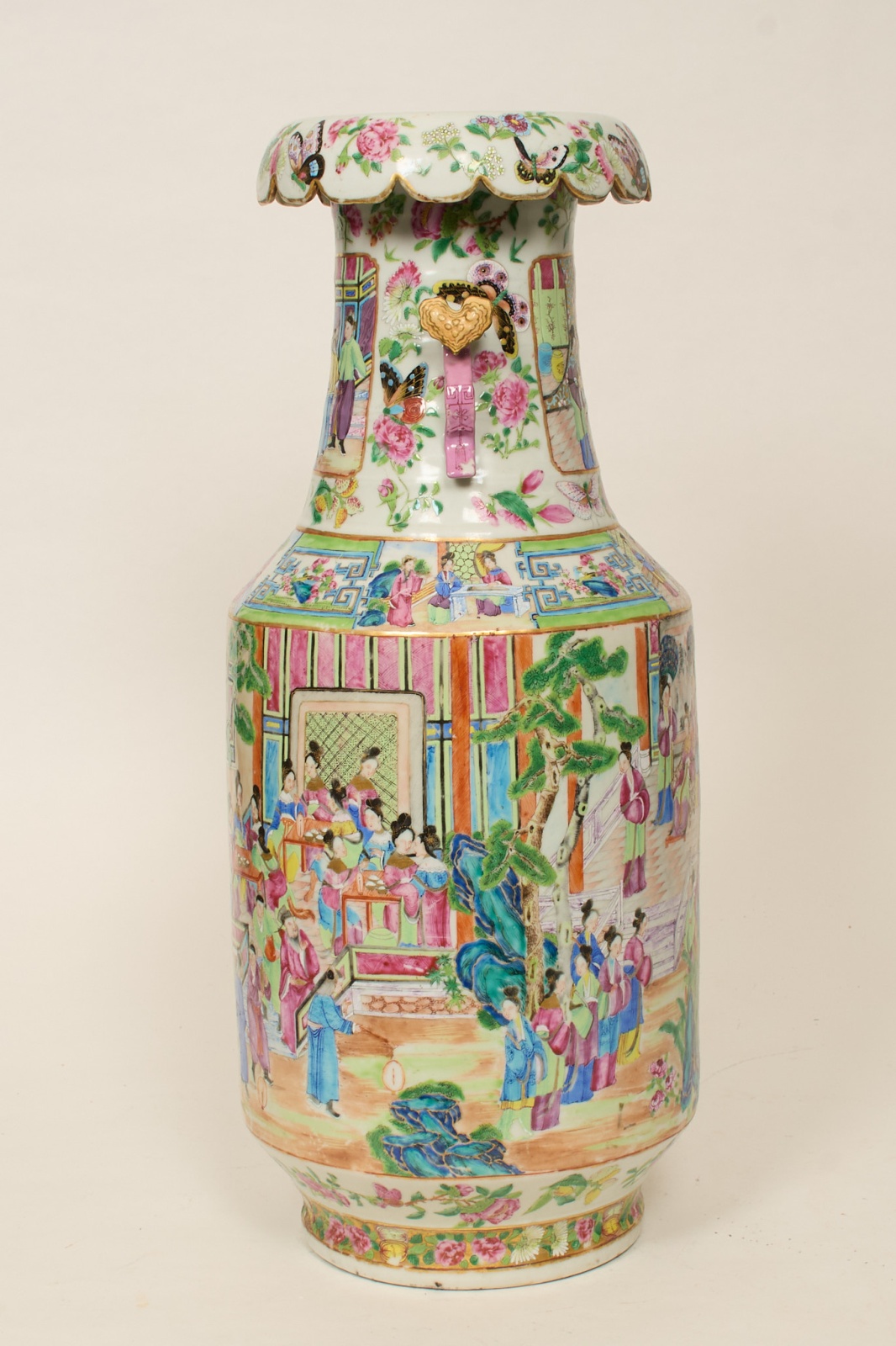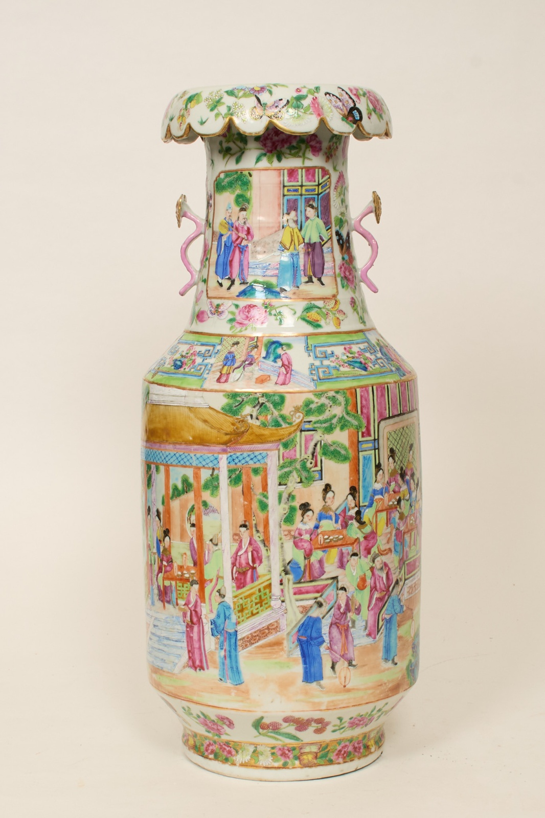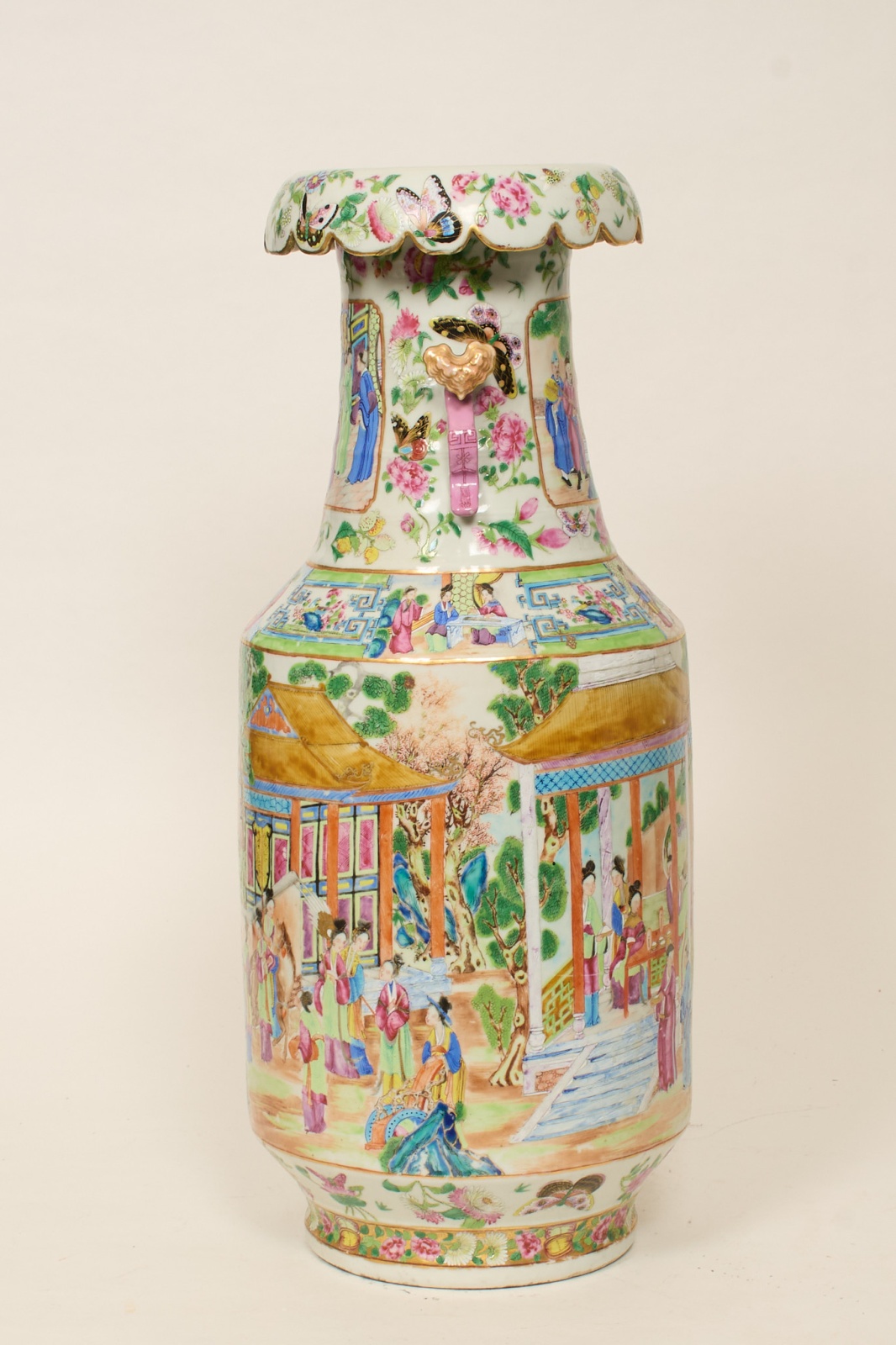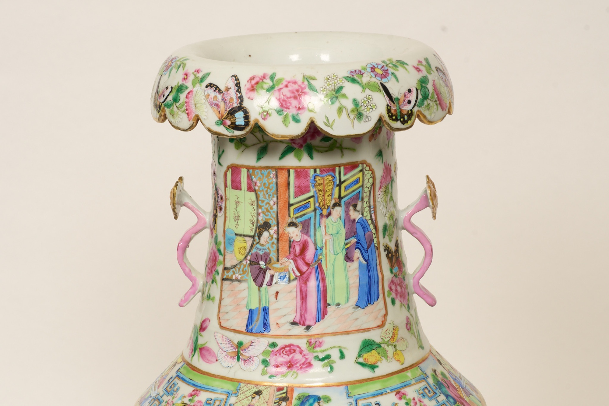 1800-tal, dekor i emaljfärger med figurer mm, höjd 61 cm, en hänkel med lagning