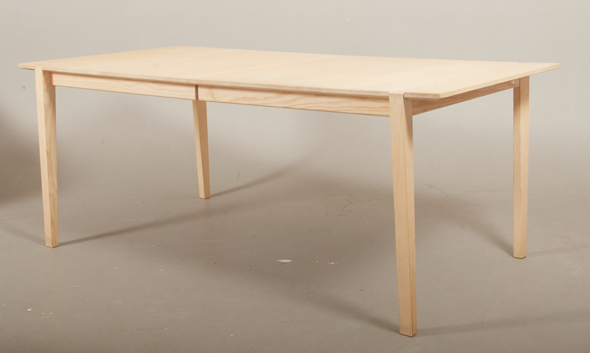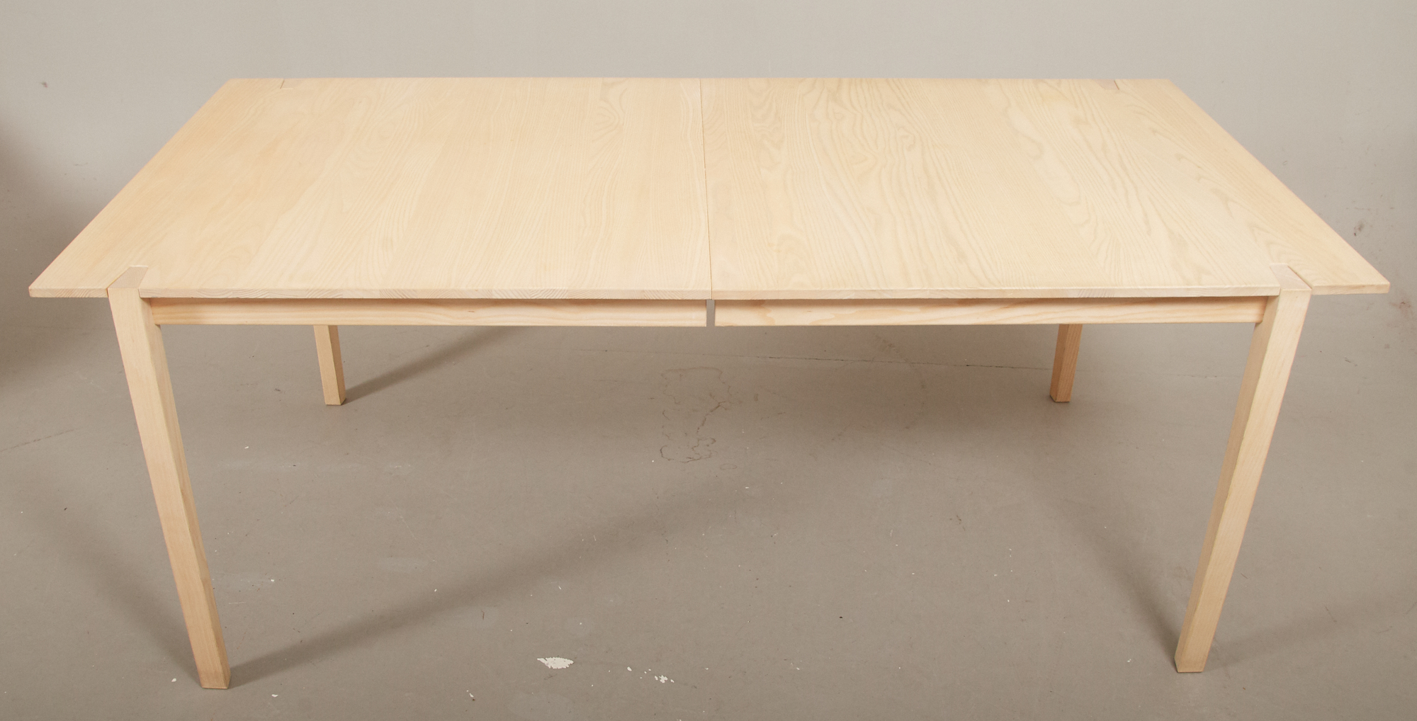 Vitoljad ask, brickmärkt, 191 x 95 cm, höjd 75 cm, ett ilägg á 50 cm, smärre bruksslitage, men enstaka skavmärken förekommer.